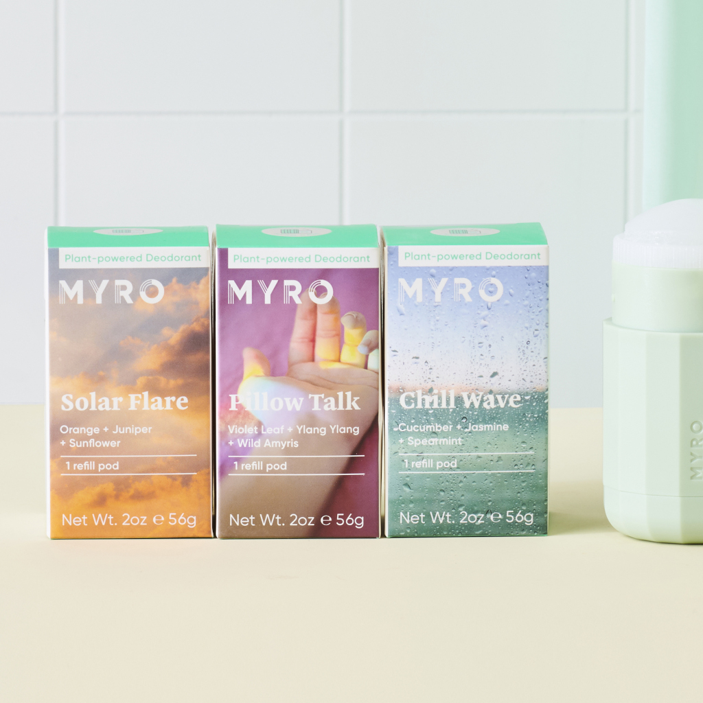 My first time using Myro deodorant, it works, last all day and comes in fresh scents, not heavy perfume scents. Can't wait to try Myro's other bath products! No reason to use any other deodorants and the case is beautiful!